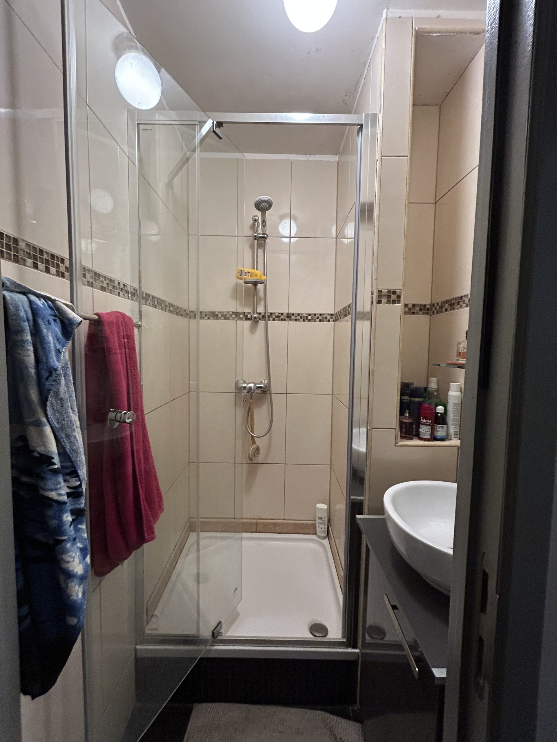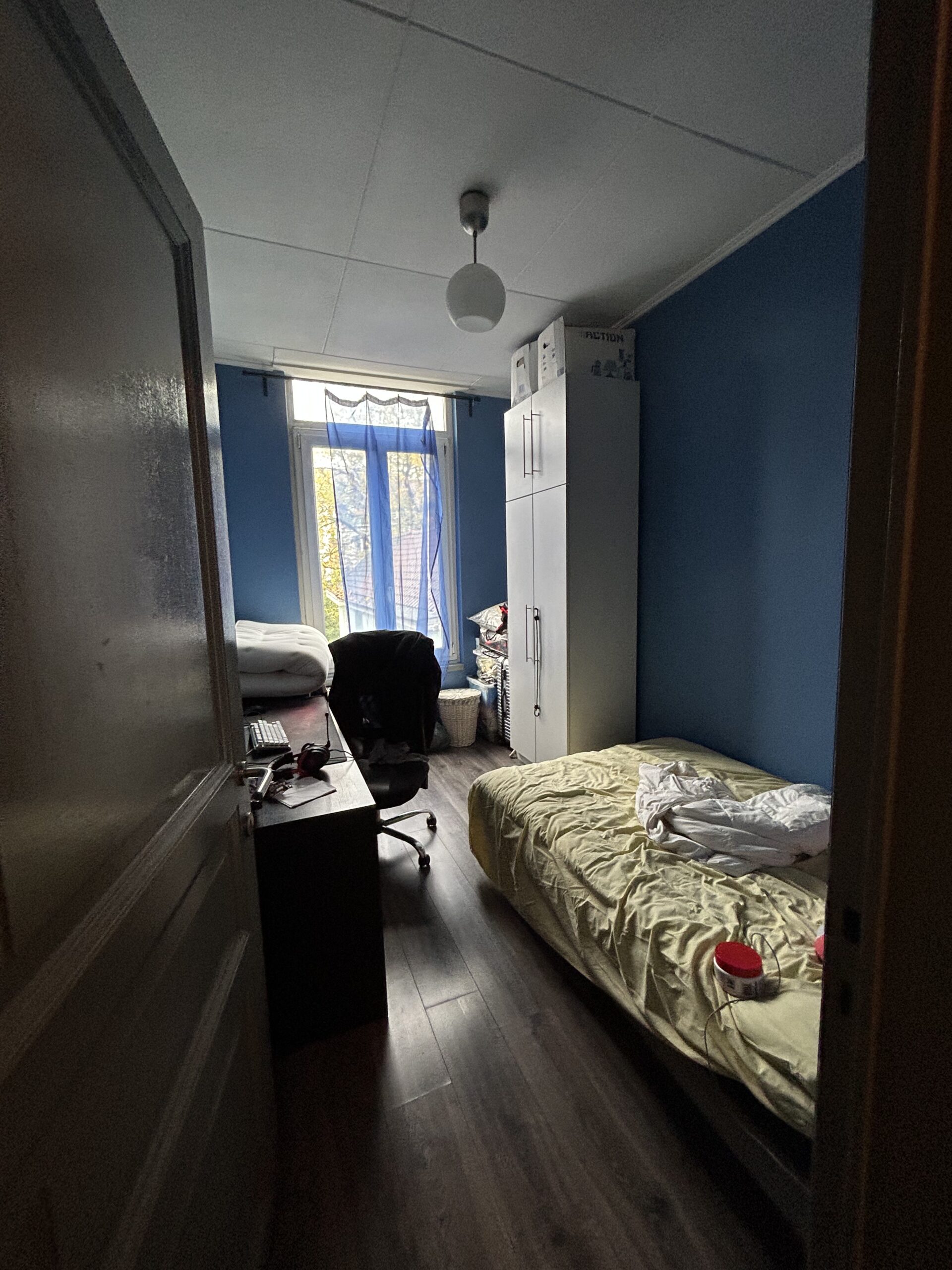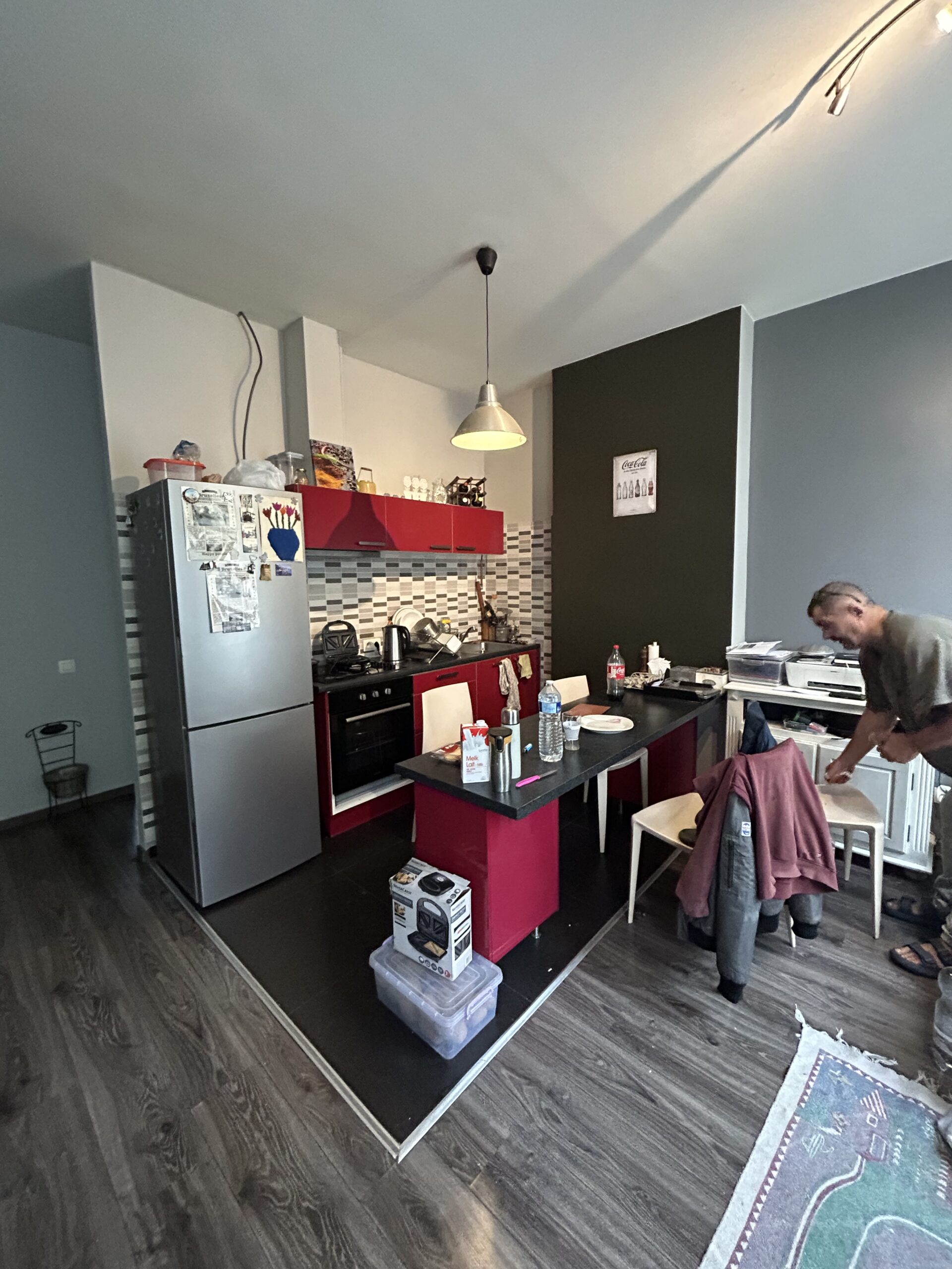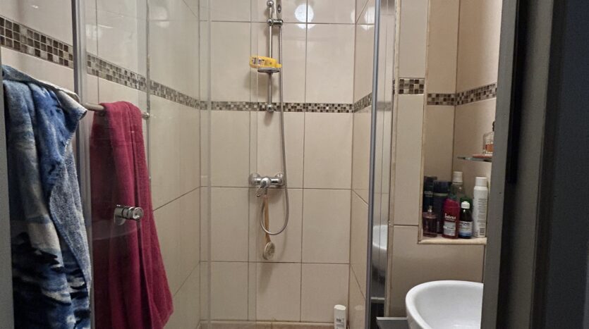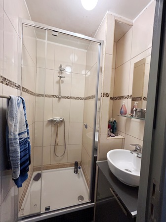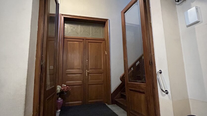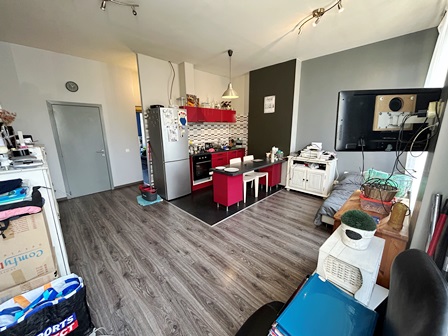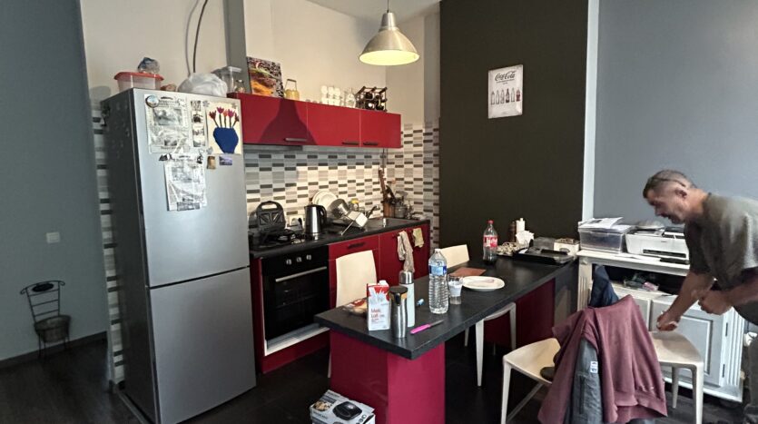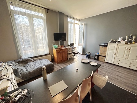 1er étage gauche: (+/- 45m2) Appartement 1ch: séjour, cuisine équipée (armoires, évier, plan de cuisson, hotte,…), salle de douches, toilette, une chambre arrière, double vitrage, coffret divisionnaire récent. Prix de vente 173.0000 euro. PEB: E (233Kwh/m2/an et 42kg CO2/m2/an) nr 20250817-0000724332-01-2 valable 17/08/2035.