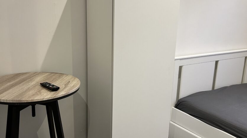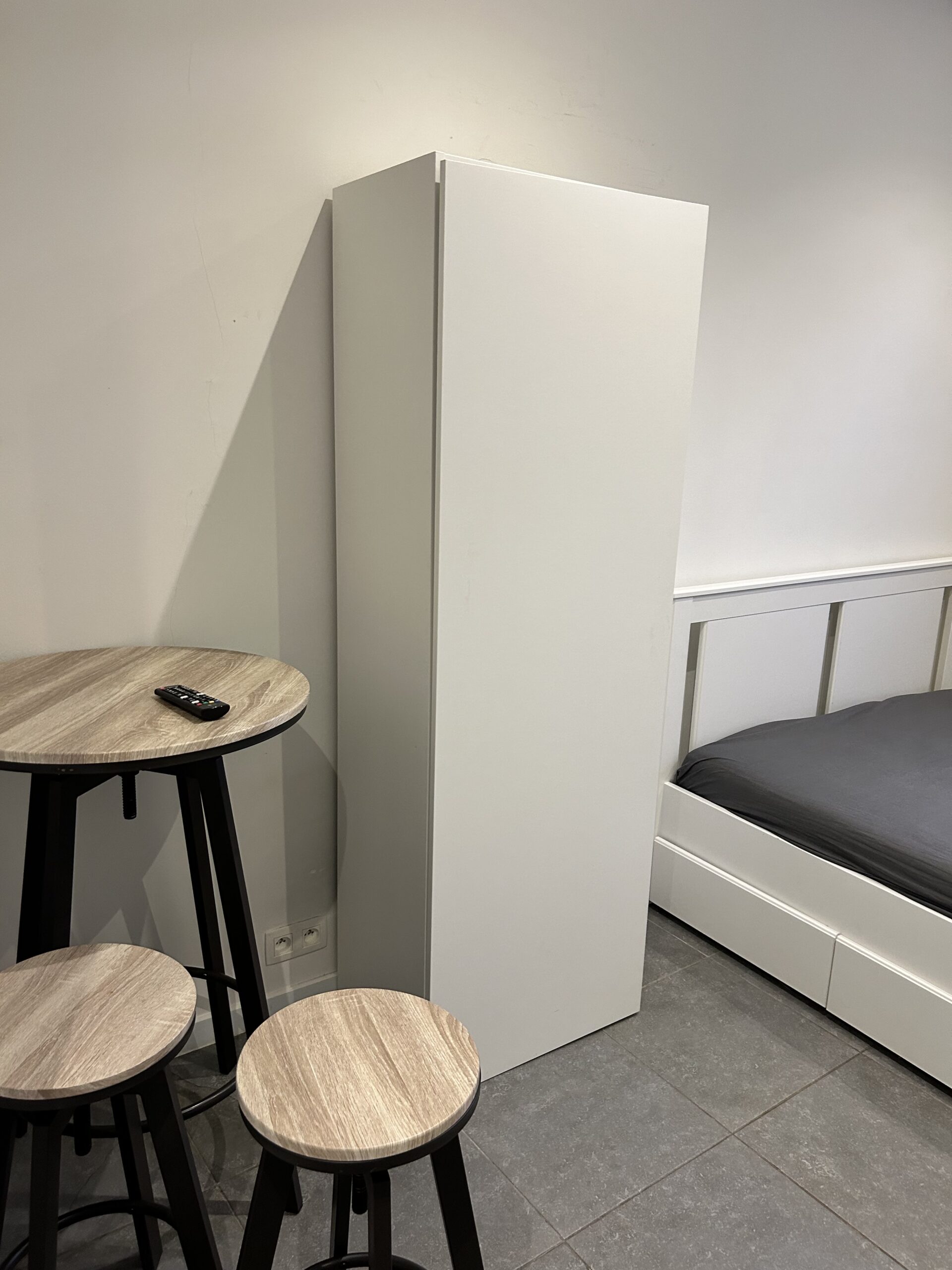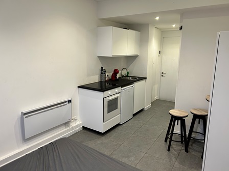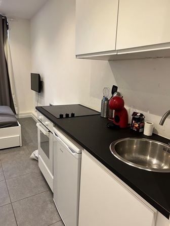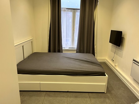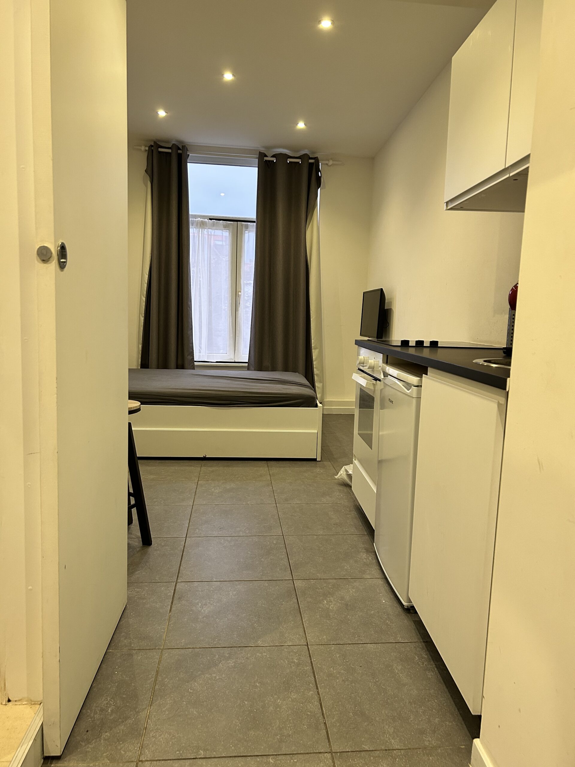 A proximité du Parc Josaphat, transports en communs (tram 25, bus 64/65,…), de petits commerces, un studio meublé comprenant un séjour avec placard, cuisine ouverte équipée (four, taques, frigo, armoires, évier), 1 lit 2 personnes, 1 TV, table haute et 2 tabourets, petite armoire, salle de douches avec toilette et lavabo. Idéal pour étudiant mais bien mieux qu’un « kot » ou pied à terre. Double vitrage, chauffage individuel électrique. Actuellement loué pour 1 an. Loyer 550 euro + 35 euro provisions pour charges eau.
