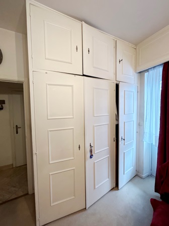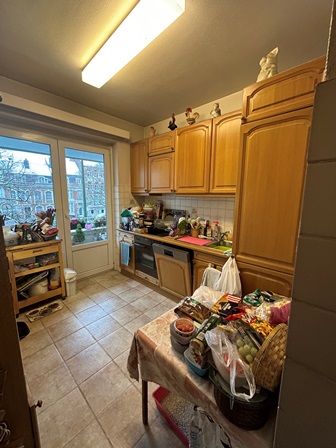 Très bien situé, à deux pas du Square Montgomery, rue des Tongres, Ecoles Saint Michel et Linthout, petit immeuble bien entretenu avec ascenseur, au second étage, bel appartement bien agencé avec beaucoup de potentiel, présente un très grand hall d’entrée avec placard, une cuisine séparée, équipée avec accès terrasse avant, spacieux living et salle à manger (parquet) nombreuses fenêtres, hall de nuit, toilette séparée, salle de bain, chambre principale avec un placard 3 portes et deux placards 1 porte, accès vers la terrasse arrière, une seconde chambre (parquet), avec petit dressing. Double vitrage pvc, une grande cave au niveau -1 et en cour arrière avec porte automatique, un grand garage pour voiture + moto +armoires +vélos.